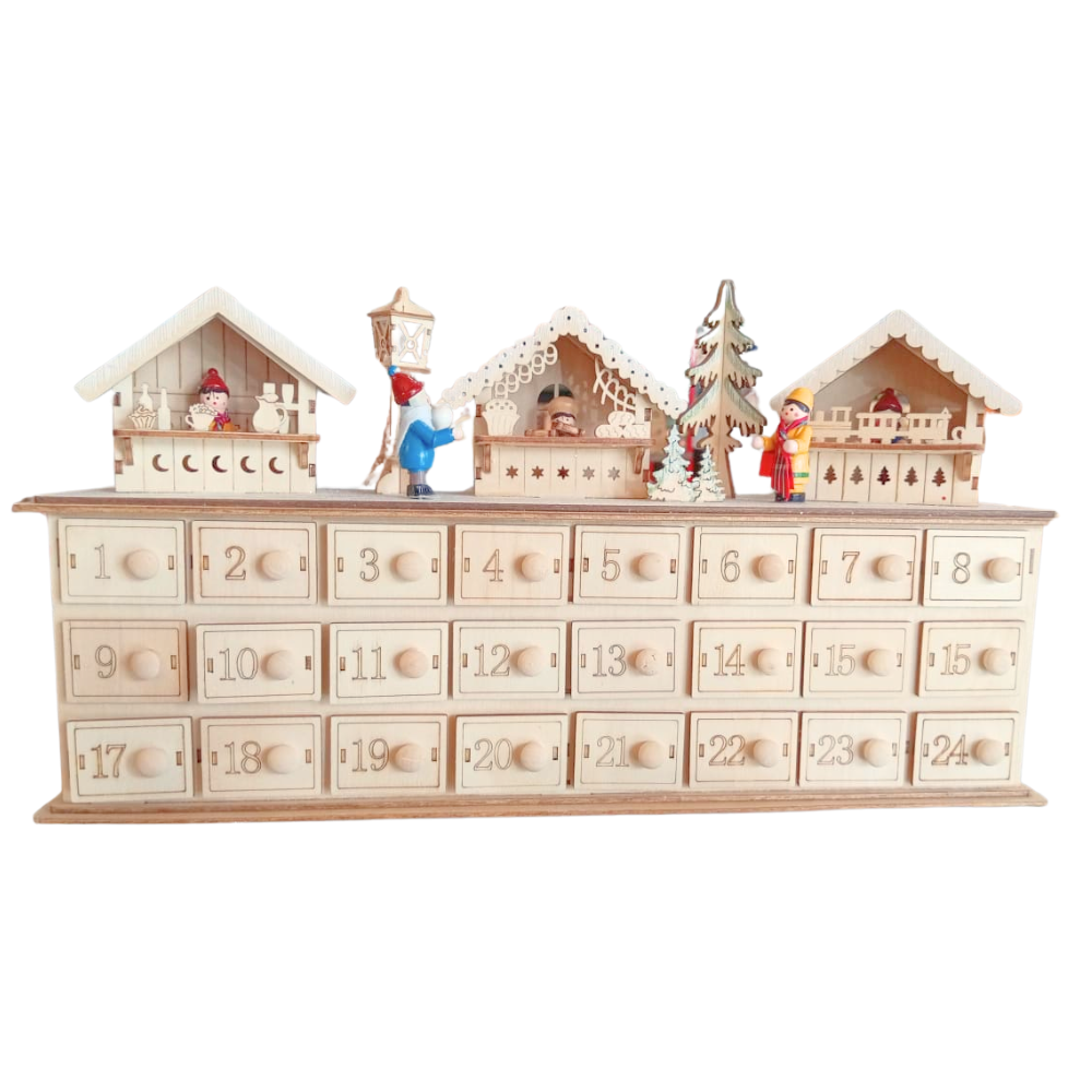 Origen: Fabricado en Alemania, reconocido por su tradición en calendarios de adviento de madera y artesanías navideñas.