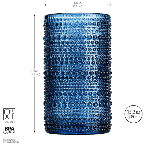 Un toque de color con estilo. Este set de 4 vasos en tono azul profundo de la línea Halo combina diseño moderno con funcionalidad. Con capacidad de 15,2 oz, son perfectos para disfrutar de agua, jugos o tus bebidas favoritas.