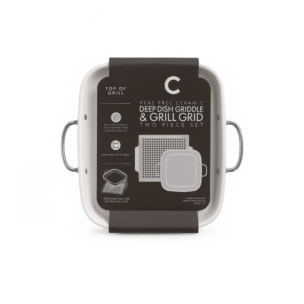 Set de 2 bandejas metálicas en elegante color gris, diseñadas para facilitar la cocción en parrillas y hornos, manteniendo tus alimentos organizados y evitando derrames.