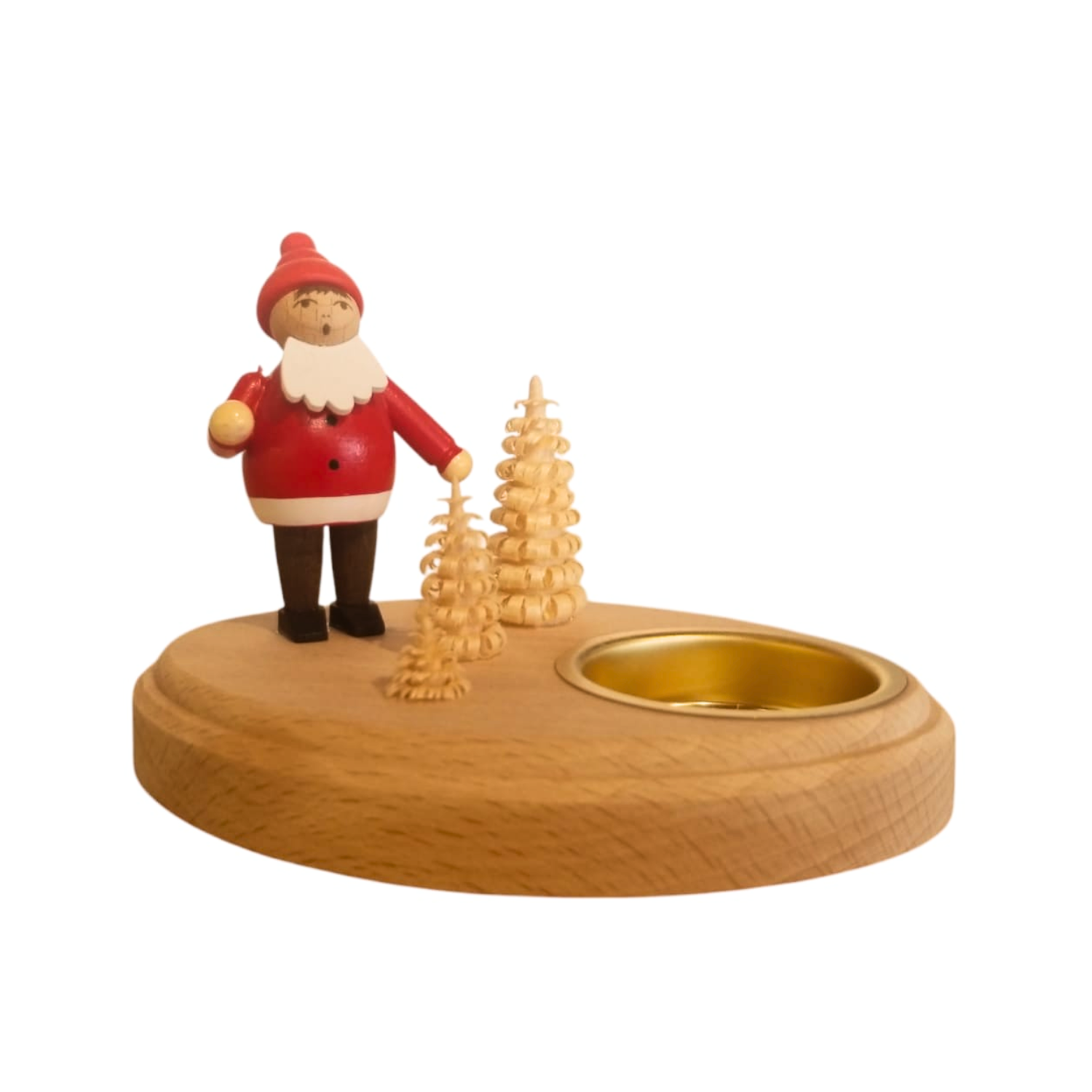 El Porta Velas Saico Noel es una pieza artesanal proveniente de Alemania, elaborada con madera natural y pintada a mano con delicados detalles que reflejan el espíritu navideño.