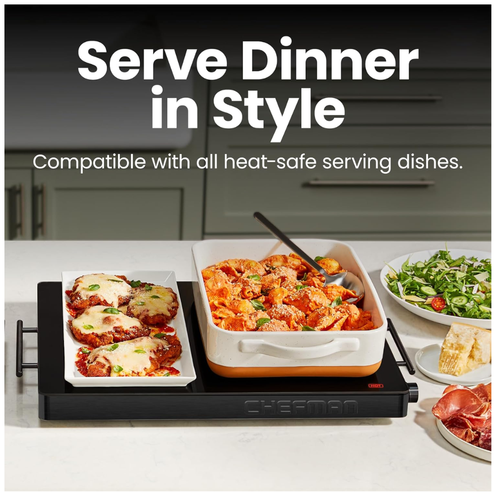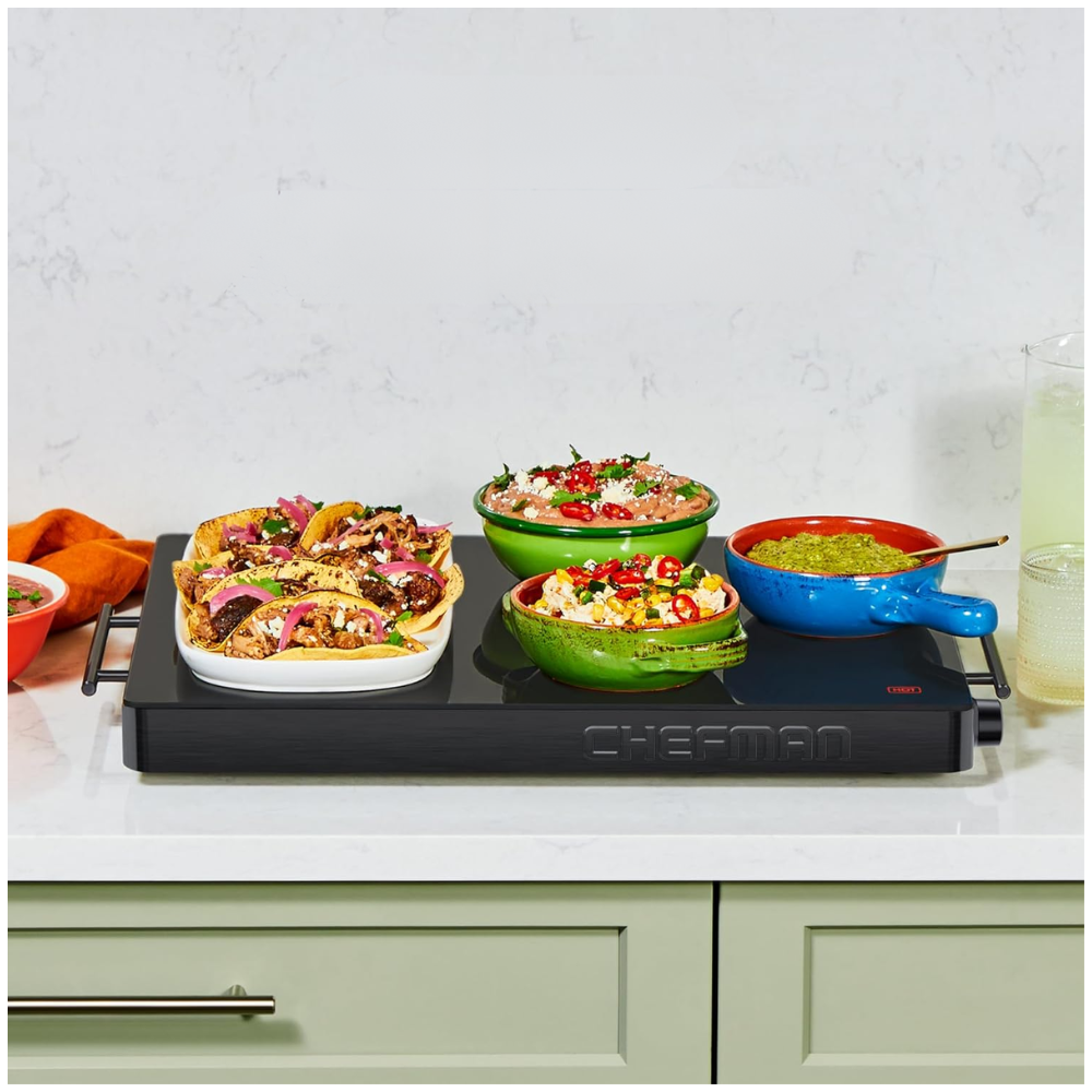 La bandeja de calentamiento eléctrica Chefman es la solución ideal para mantener los alimentos calientes y listos para servir. Perfecta para bufés, cenas familiares, restaurantes, eventos y celebraciones, combina elegancia, funcionalidad y seguridad en un diseño práctico y resistente.