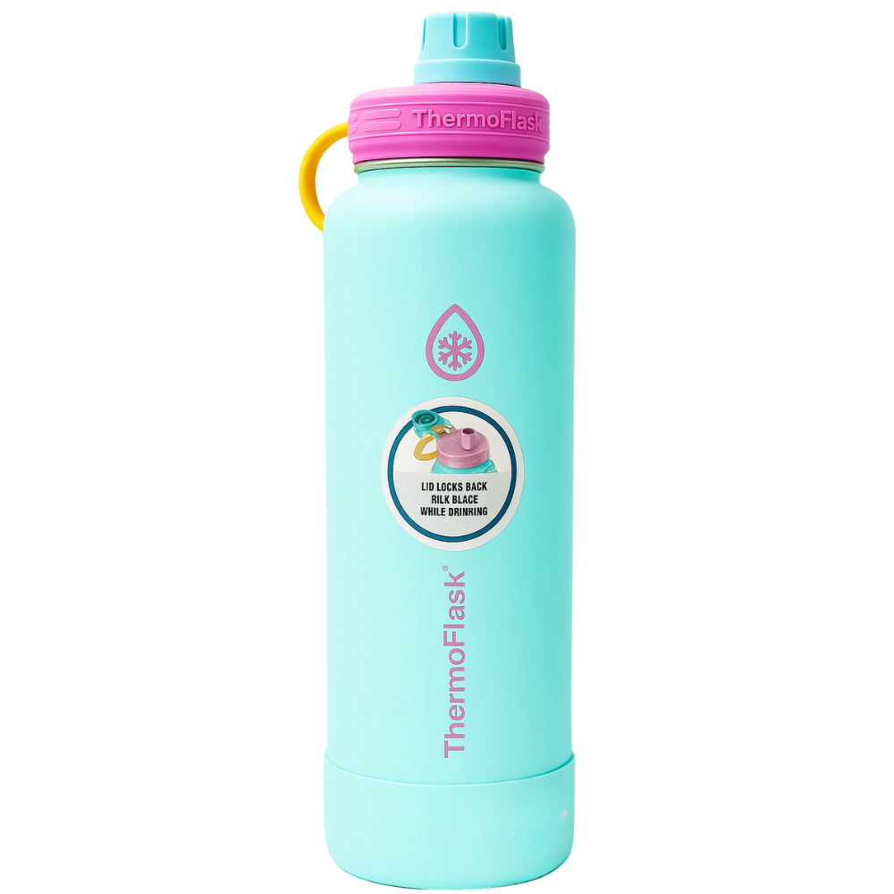 El termo ThermoFlask de 1.2 litros en color celeste es la opción ideal para mantener tus bebidas a la temperatura perfecta durante todo el día. Gracias a su aislamiento al vacío de doble pared, conserva las bebidas frías hasta por 24 horas y calientes hasta por 15 horas, siendo perfecto para la oficina, el gimnasio, excursiones o actividades al aire libre.